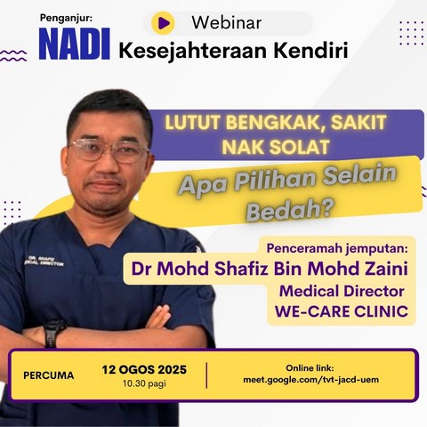WEBINAR Kesejahteraan Kendiri - WEBINAR PERCUMA! “Lutut Bengkak, Sakit Nak Solat – Apa Pilihan Selain Bedah?” | W073
