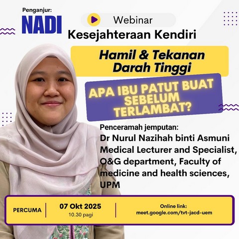 WEBINAR Kesejahteraan Kendiri - Hamil & Tekanan Darah Tinggi: Apa Ibu Patut Buat Sebelum Terlambat? | W087