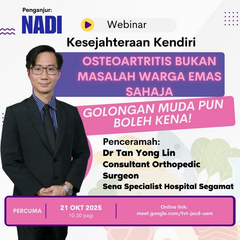 WEBINAR Kesejahteraan Kendiri - WEBINAR Kesejahteraan Kendiri - Osteoartritis Bukan Masalah warga emas sahaja - Golongan muda pub boleh kena (W091)