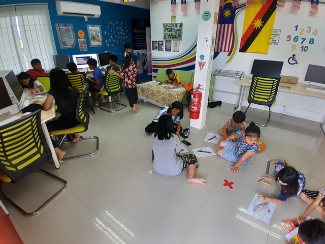 6 Ogos 2023 | Aktiviti TerkiniPada hari Sabtu, 5 Ogos 2023, Pusat Ekonomi Digital Bengoh telah mengadakan satu program hujung minggu bersama dengan kanak-kanak tempatan. Dalam aktiviti ini, seramai 16 orang kanak-kanak berusia dalam ringkungan 6 hingga 13 tahun telah menyertai aktiviti hujung minggu ini iaitu Kenali Sarawakku dengan mewarna. Aktiviti ini telah berlangsung selama 1 jam, bermula pada pukul 2:30 petang ke 3:30 petang. Aktiviti dimulakan dengan kuiz ringan mengenai negeri Sarawak. Setelah itu, peserta diberikan bendera Sarawak untuk mewarna. Para peserta muda dibimbing dengan baik oleh peserta yang lebih tua untuk mengenali warna pada bendera Sarawak.