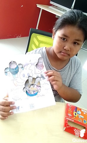 - Aktiviti ini dijalankan dengan menggabungkan kaedah mewarna fizikal dan teknologi dimana para pelajar diberi peluang untuk melihat dunia nyata serta elemen tambahan apabila hasil mewarna mereka diimbas dengan menggunakan aplikasi Quiver Vision.