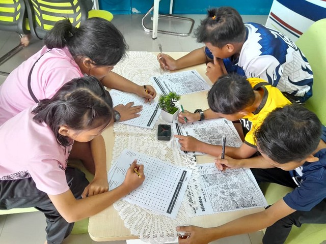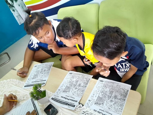 Para peserta diberi soalan yang mempunyai 2 bahagian iatu mencari perkataan tersembunyi dan mencari objek tersembunyi di dalam cetakan bergambar yang disediakan. Objektif pembelajaran ini adalah untuk mengasah kreativiti para peserta muda kita dalam menyelesaian sesuatu permasalahan dan melatih kepekaan mereka terhadap objek tersembunyi di dalam sesuatu gambar.