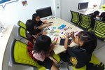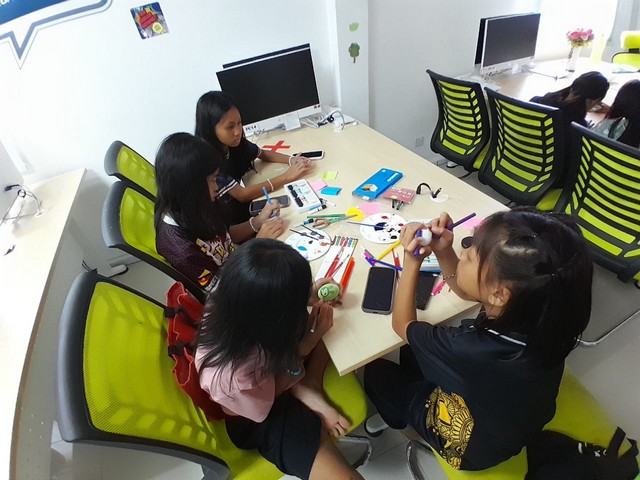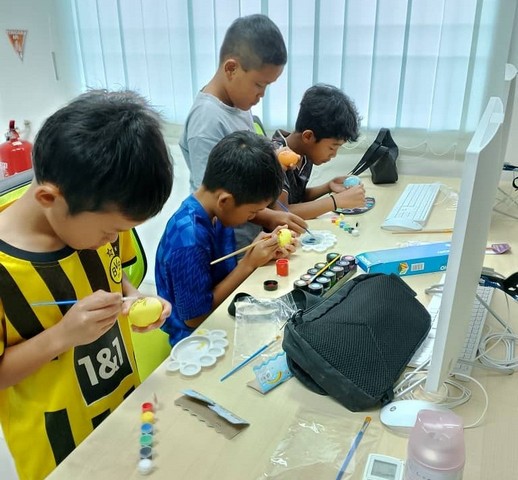 Dalam masa yang sama, acara bagi Kategori 2 juga telah berlangsung. Para peserta menggunakan warna air sebagai media untuk mewarna lakaran animasi yang comel pada sebiji telur plastik. Tanpa halangan, kami menggalakkan kreativiti dari peserta muda untuk menyerlahkan bakat mewarna mereka.