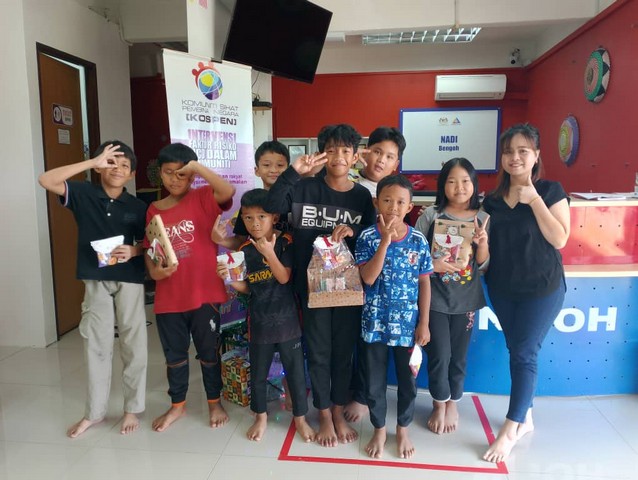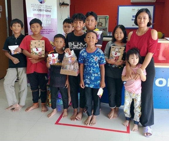 Program dimulakan dengan perkongsian SAFE and Shield oleh staff NADI Bengoh dan seterusnya aktiviti mewarna kad ucapan Hari Krismas dimulakan. Staff NADI Bengoh turut mengambil bahagian untuk memberi motivasi kepada para peserta muda kami. Program kemudian diteruskan dengan aktiviti menghias pokok krismas dan mula mengantung hasil kad ucapan tadi pada kawasan kaunter.