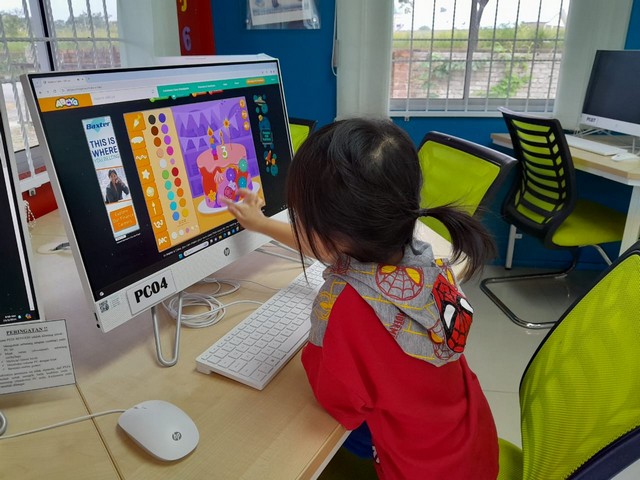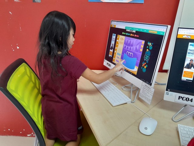 Dalam aktiviti ini, peserta mud akita didedahkan dengan penggunaan komputer dan permainan dalam talian yang boleh menarik minat mereka sekali gus melatih kreativiti mereka serta kelincahan mereka dalam penggunaan asas komputer seperti papan kekunci dan tetikus. Melalui permainan, “Make a Cake” dan “Make a house”, peserta kanak-kanak kita menunjukkan minat dan motivasi dalam pembelajaran ini serta berupaya memahami bentuk permainan tersebut sendiri.