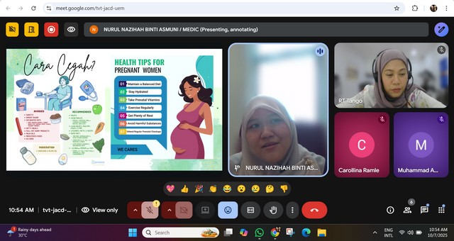 Diharapkan penyertaan dalam webinar ini dapat memberikan ilmu pengetahuan baharu serta meningkatkan kesedaran peserta mengenai pentingnya penjagaan kesihatan ibu hamil. Semoga manfaat yang diperoleh dapat diaplikasikan untuk kesejahteraan diri dan keluarga pada masa hadapan. Sekian, terima kasih.